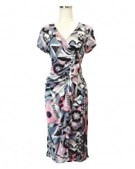 Wrap Dress w/ Frill, Abstract Print Fabric From Milan