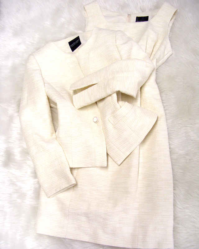 スカートスーツ ホワイトWhite Collarless One Button Jacket & Pencil Skirt Ensemble