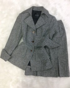 ラメ入りのブラック・グレーのツィード生地のスカートスーツ