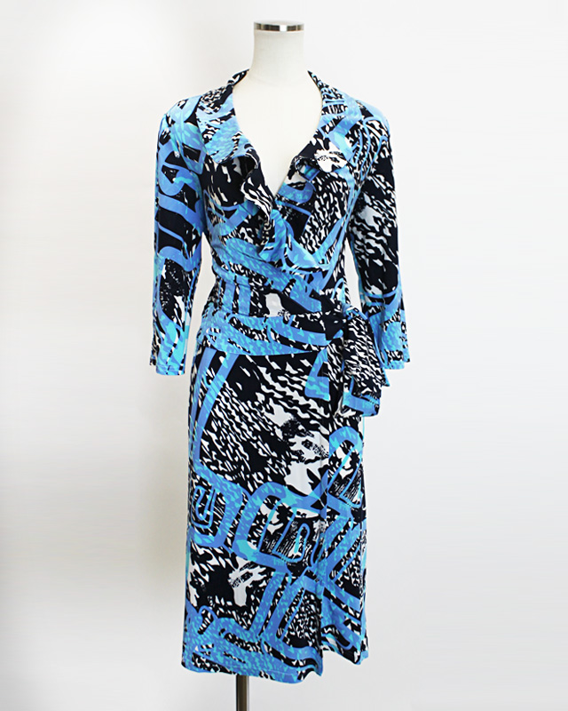 Wrap Dress w/ Frill, Abstract Print Fabric From Milan